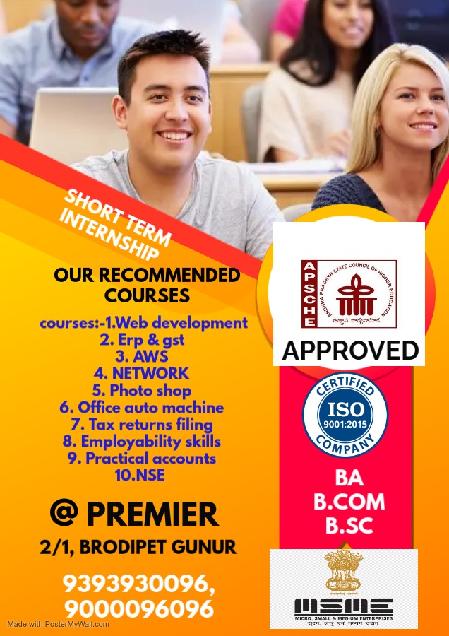 Premier Training Experts warmly Welcome, students to learn all these Software Courses in Guntur After Joining Software Courses at Premier Training Experts, we will provide Textbook, workbook to our students. We are ISO 9001:2015 Recognized Software Training Institutes in Guntur. We will provide Digital Class Rooms with High Configured Lab.